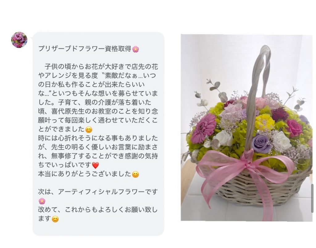 卒業生の声北九州フラワーアレンジメント教室